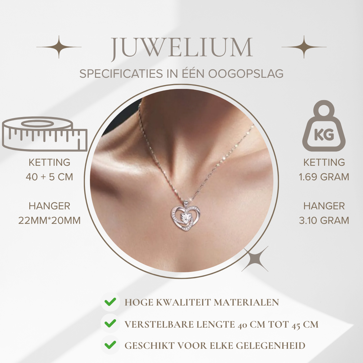 Draag de Juwelium Hart Ketting met Hart Kristal solo voor een subtiel romantische look, of combineer haar met de Hart Oorbellen of Hart Armband voor een complete, schitterende set.
