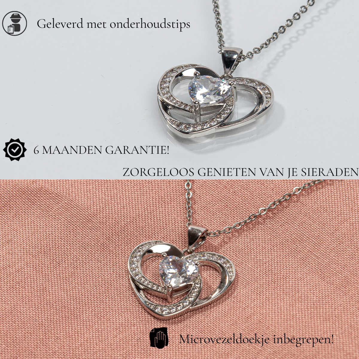 De Hart Ketting met Hart Kristal wordt standaard geleverd in onze stijlvolle standaard doos – een elegant wit doosje met een zachte zwarte spons voor een luxe presentatie.