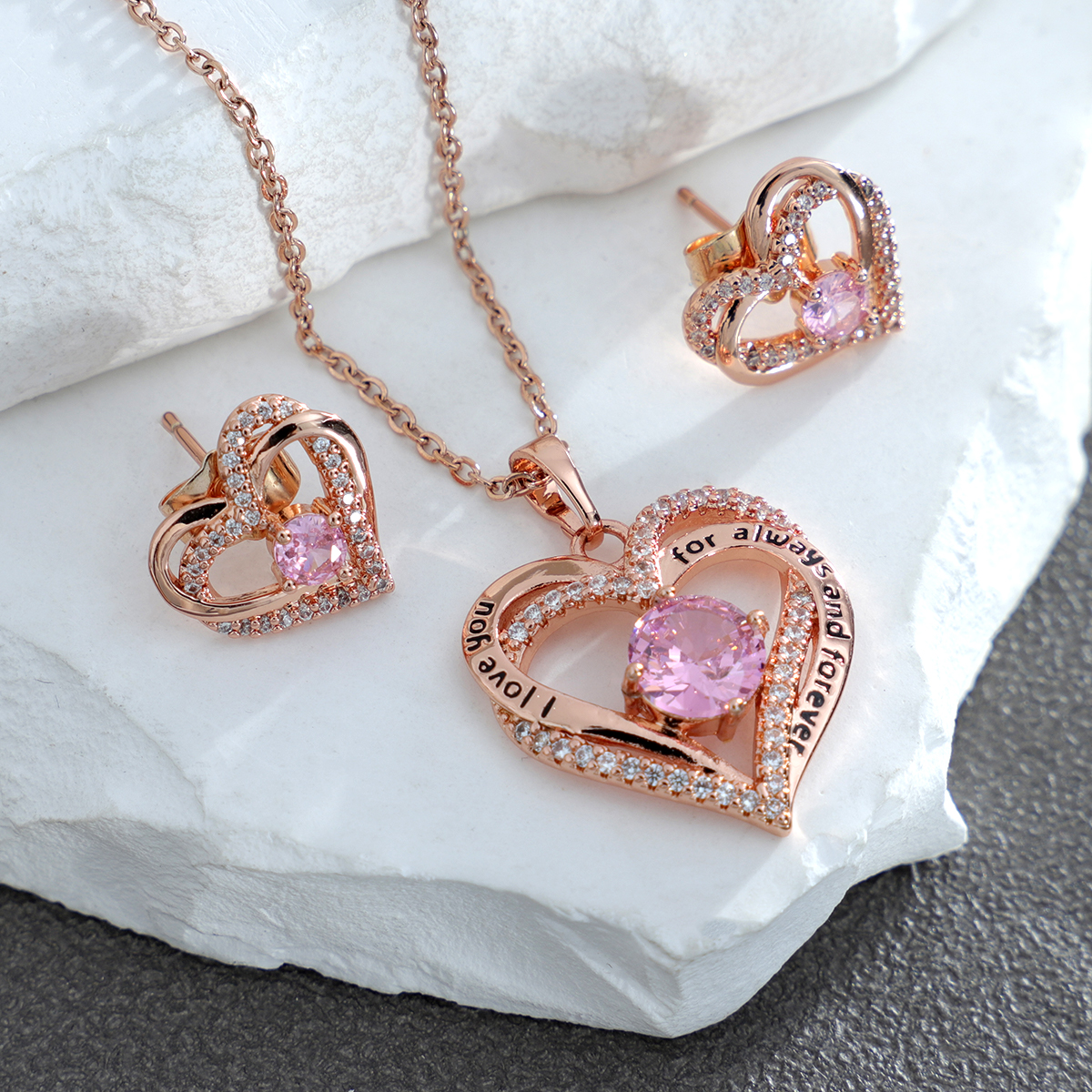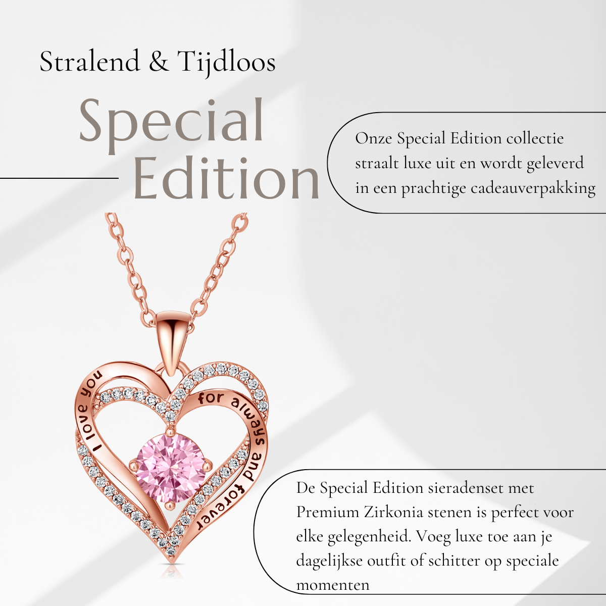 Juwelium Rose Gold ‘I love You’ Hart Ketting & Oorbellen is het perfecte cadeau voor haar – elegant, romantisch en liefdevol verpakt.