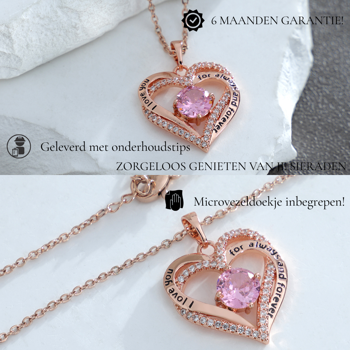 Houd uw sieraden stralend door ze regelmatig schoon te maken met de meegeleverde microvezeldoek van Juwelium. Dit verwijdert vuil en geeft uw sieraden hun maximale glans terug.