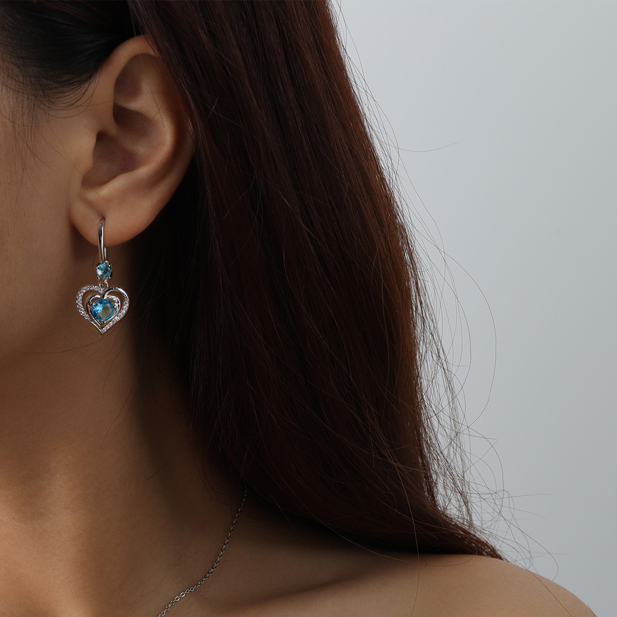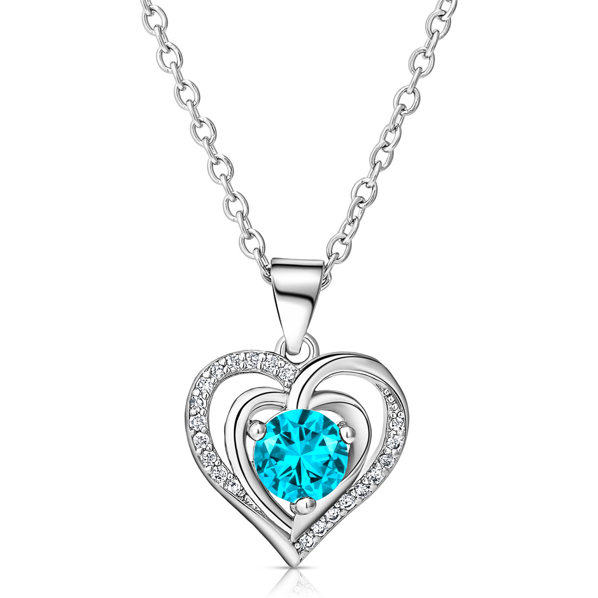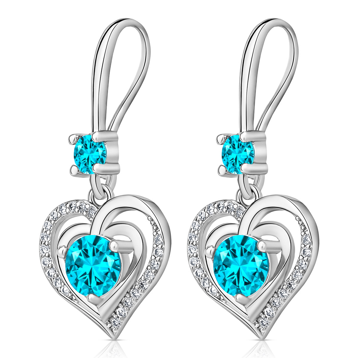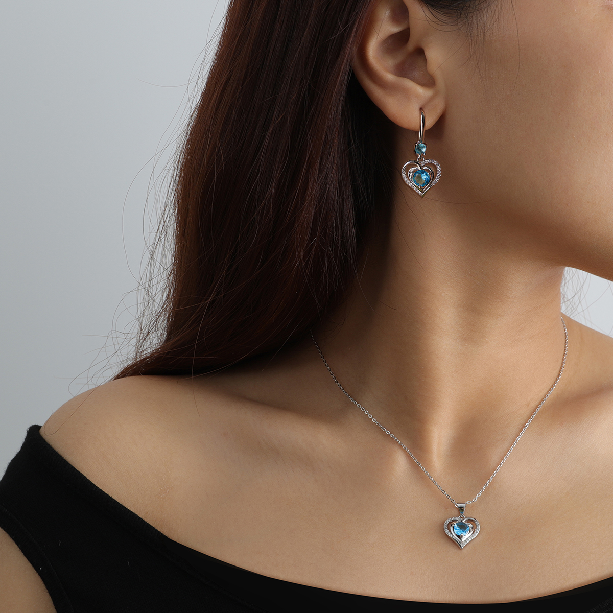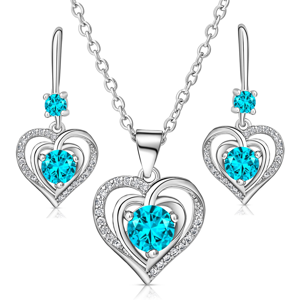 Verras jezelf of een dierbare met deze verfijnde Swarovski Hart in Hart Ketting en Oorbellen Set – Aqua Blauw van Juwelium.
