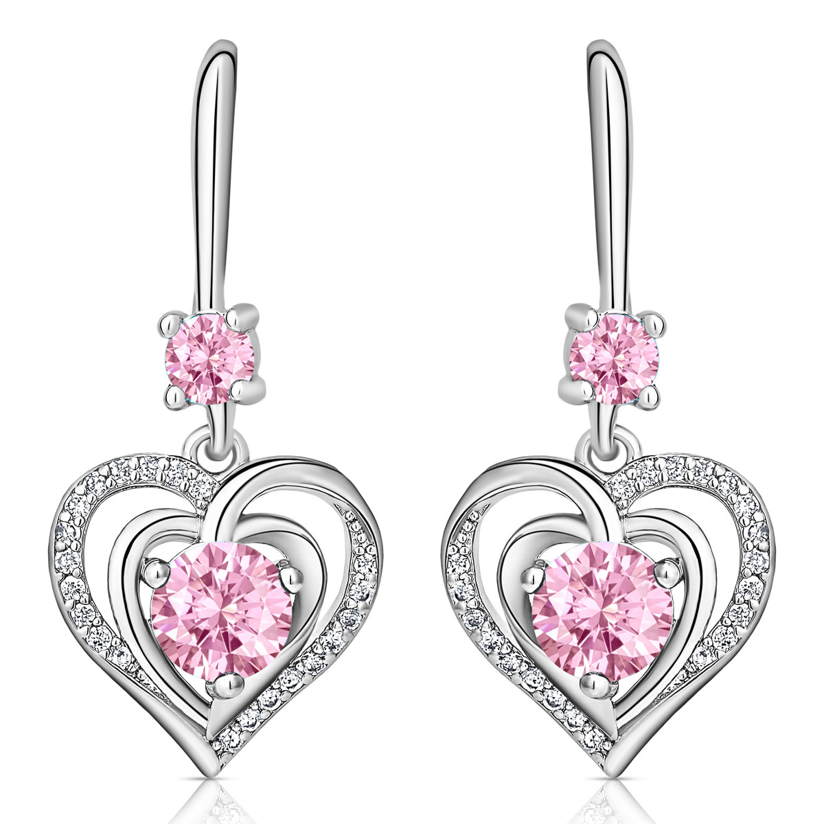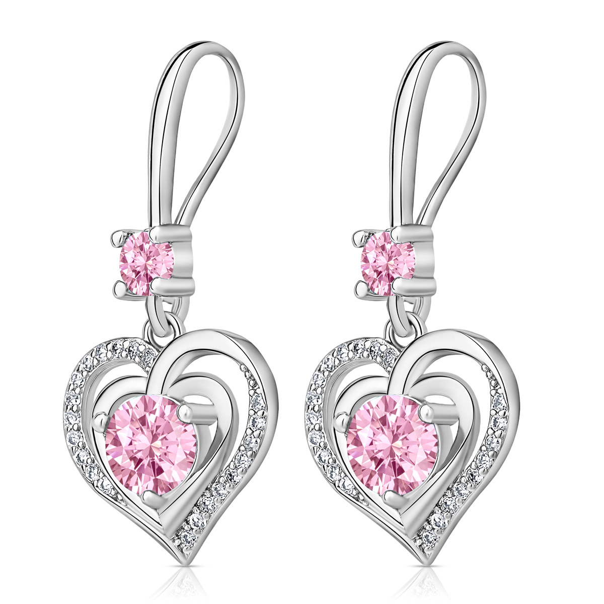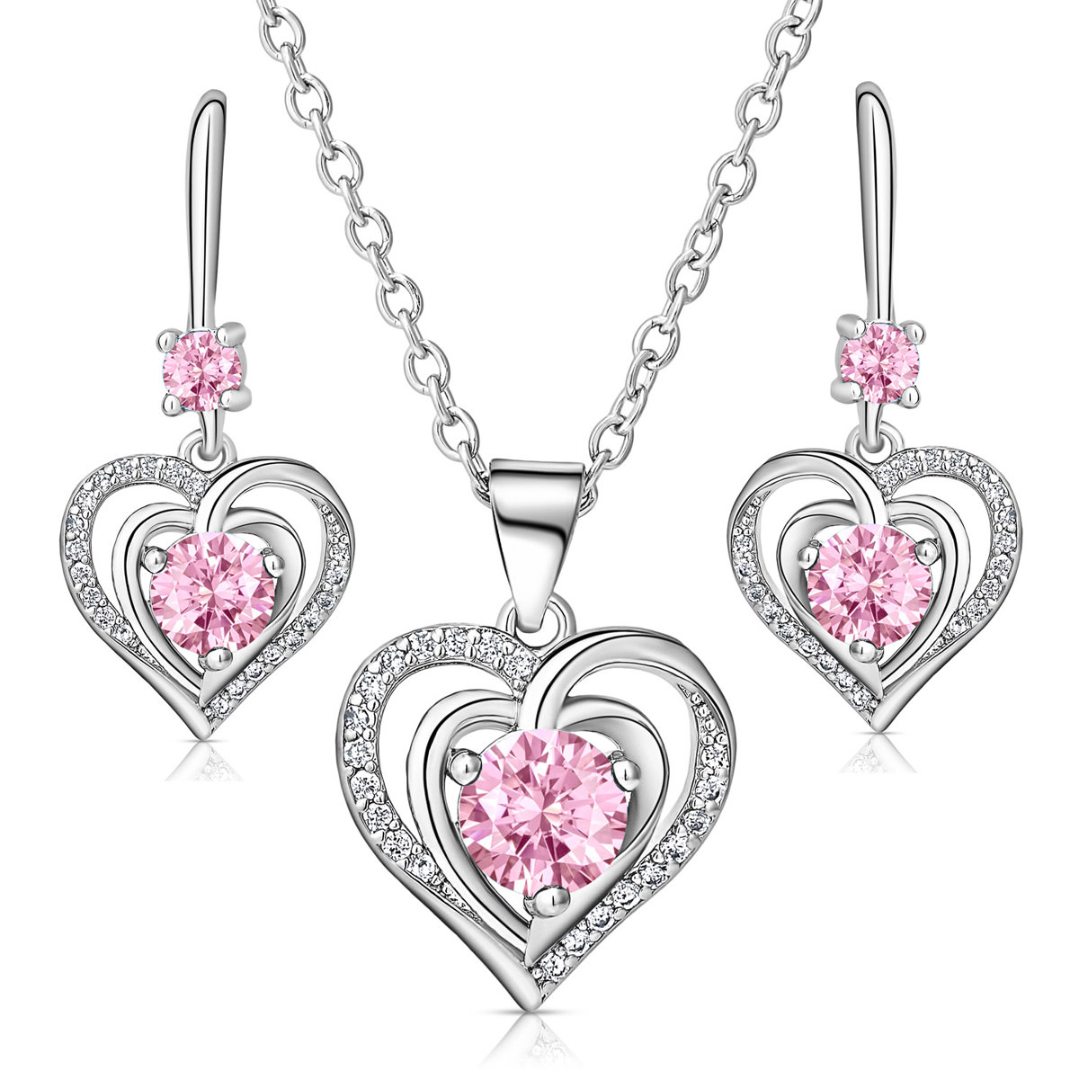 Informatie over Swarovski Hart in Hart Ketting en Oorbellen (Roze)